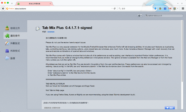 Firefox 很早就提供了分頁的功能,可是 Tab Mix Plus 讓這個功能變得更神奇。